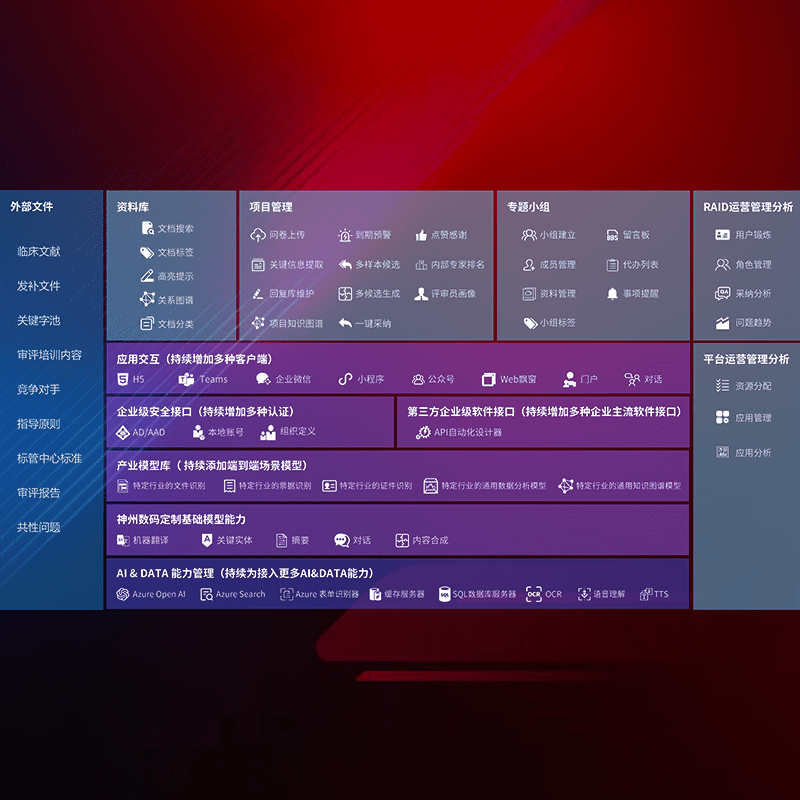 医疗器械产品上市前,,,要熟悉严格与繁复评审标准,,,,整理分析监管机构指导文件中的海量信息。。企业急需一个智能化解决方案,,,,提升知识管理效率,,,提高评审通过率,,以提升其市场竞争力。。。。